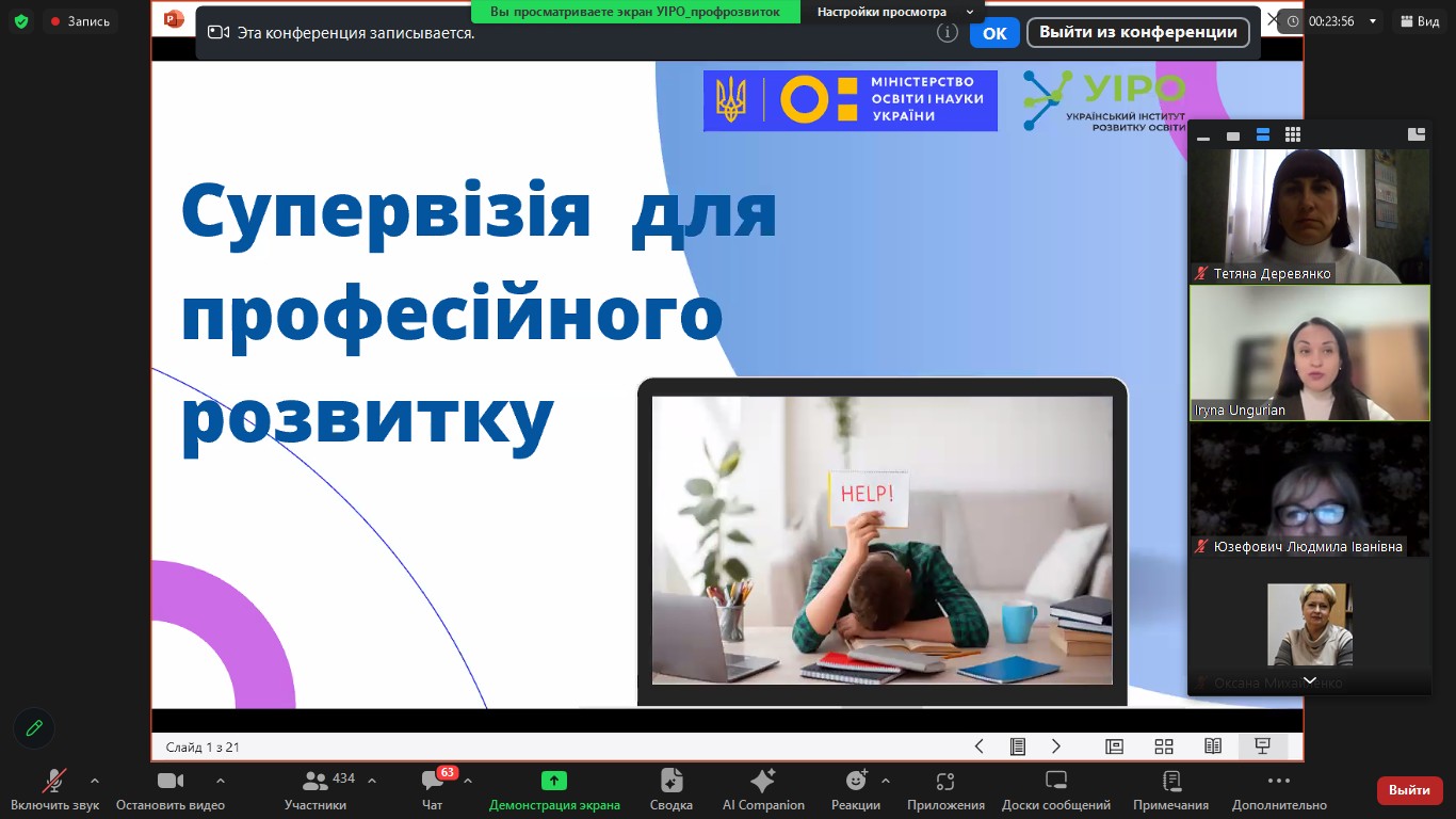 УЧАСТЬ ВИКЛАДАЧІВ І СТУДЕНТІВ У ВЕБІНАРІ «СУПЕРВІЗІЯ ДЛЯ ПРОФЕСІЙНОГО ЗРОСТАННЯ ОСВІТЯН»