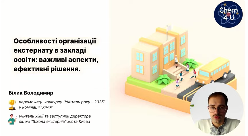 Студенти освітньої програми «Середня освіта (Хімія)» разом із викладачами кафедри хімії та методики викладання хімії долучилися до участі у Всеукраїнській школі майстерності «Педагогічний стартап». Захід організовано Державною науковою установою «Інститут модернізації змісту освіти» та спрямовано на розвиток професійної педагогічної творчості, інноваційного мислення та навичок впровадження сучасних освітніх технологій.