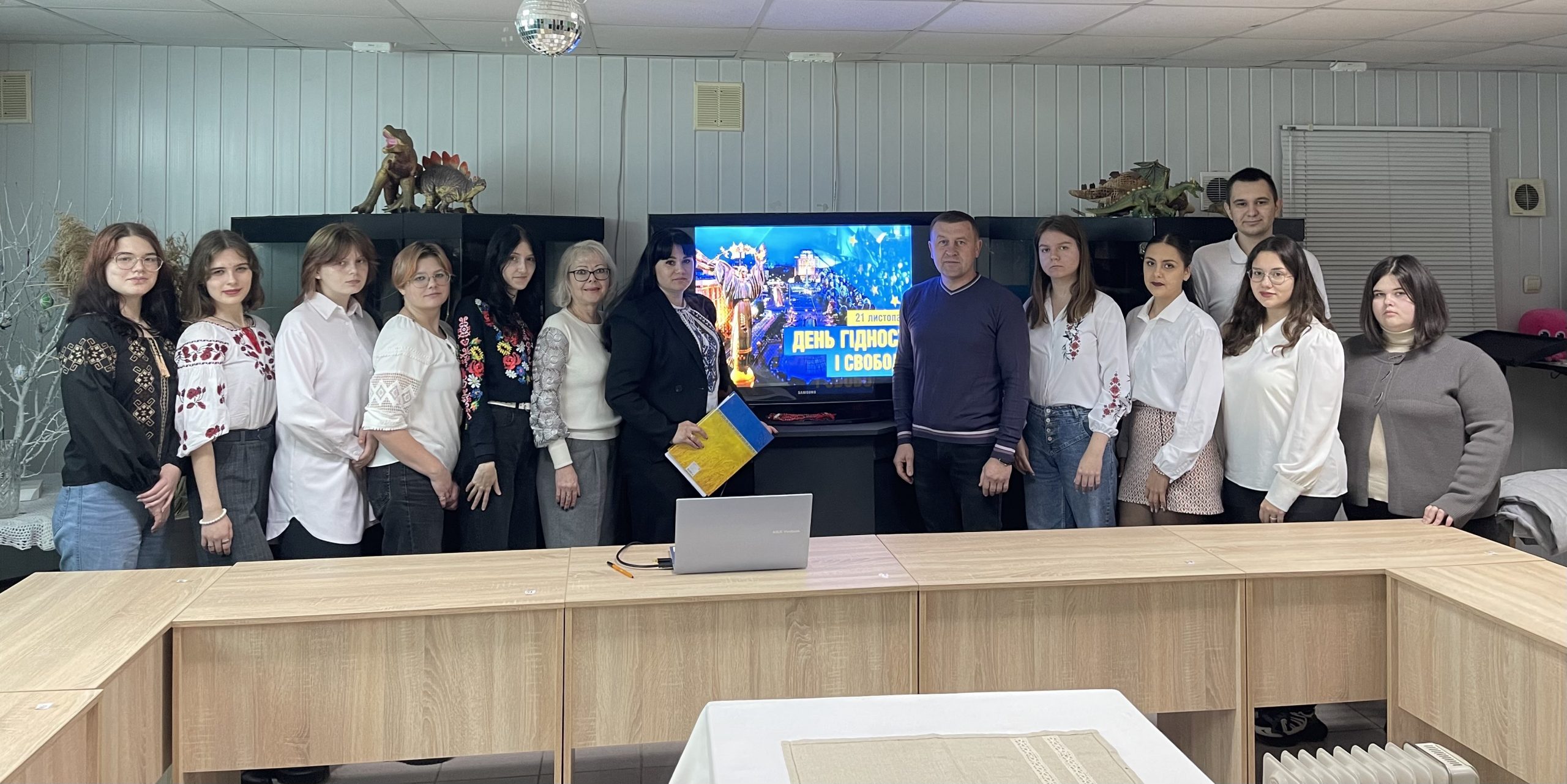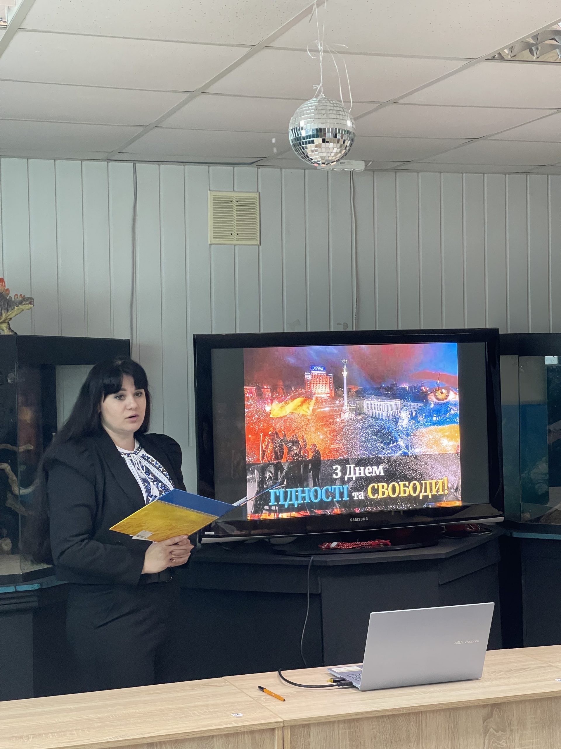 21 листопада 2025 року заступниця декана з виховної роботи факультету природничих наук та менеджменту Ілона ДОНЕЦЬ разом із деканом Сергієм НОВОПИСЬМЕННИМ та викладачами кафедри біології, здоров’я людини та фізичної реабілітації провели виховний захід до Дня Гідності і Свободи для студентів першого (бакалаврського) рівня вищої освіти спеціальностей А4.05 Середня освіта (Біологія та здоров’я людини) та Е1 Біологія та біохімія. Здобувачі освіти взяли активну участь у тематичному заході, де обговорили значення свободи для сучасної молоді, переглянули відеоматеріали про ключові моменти Революції Гідності та вшанували пам’ять Героїв Небесної Сотні хвилиною мовчання.