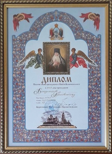Володимир Красовський – лауреат премії  імені преподобного Паїсія Величковського