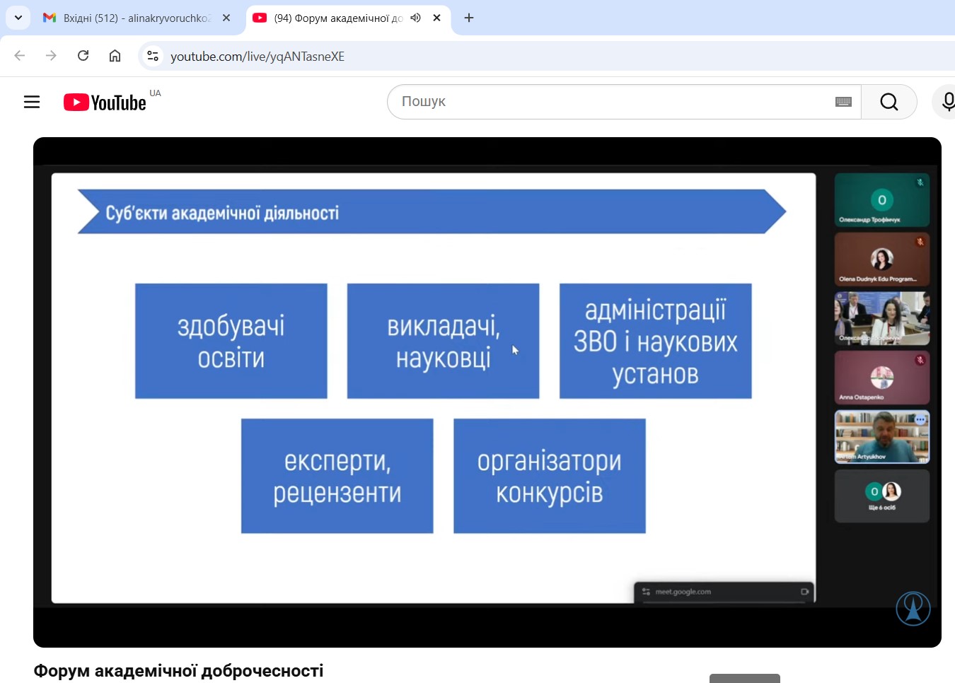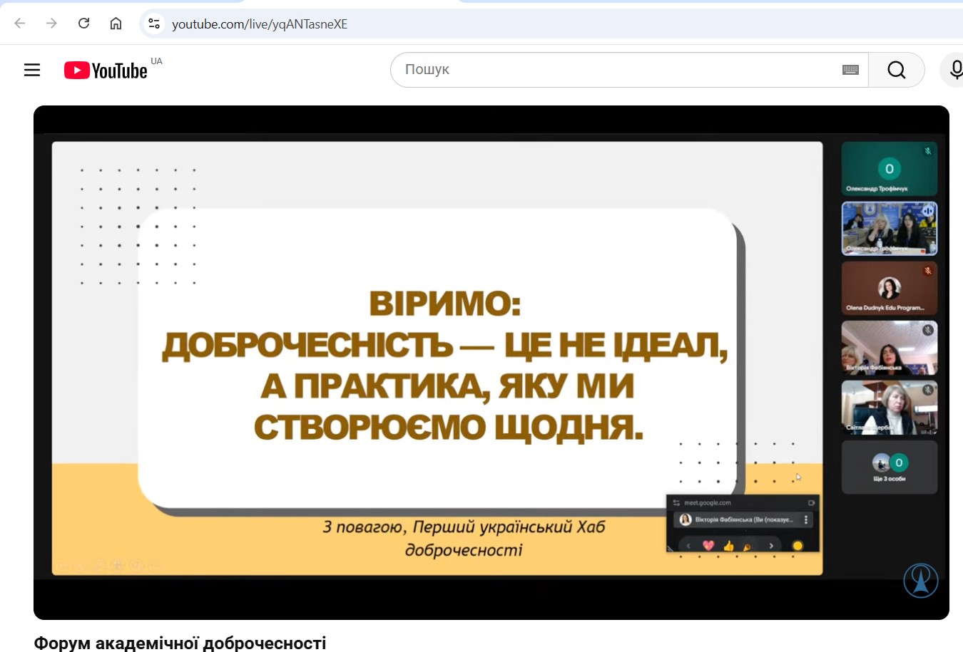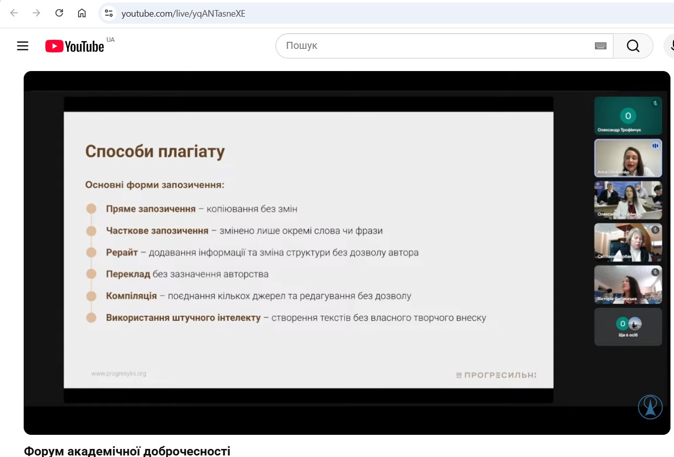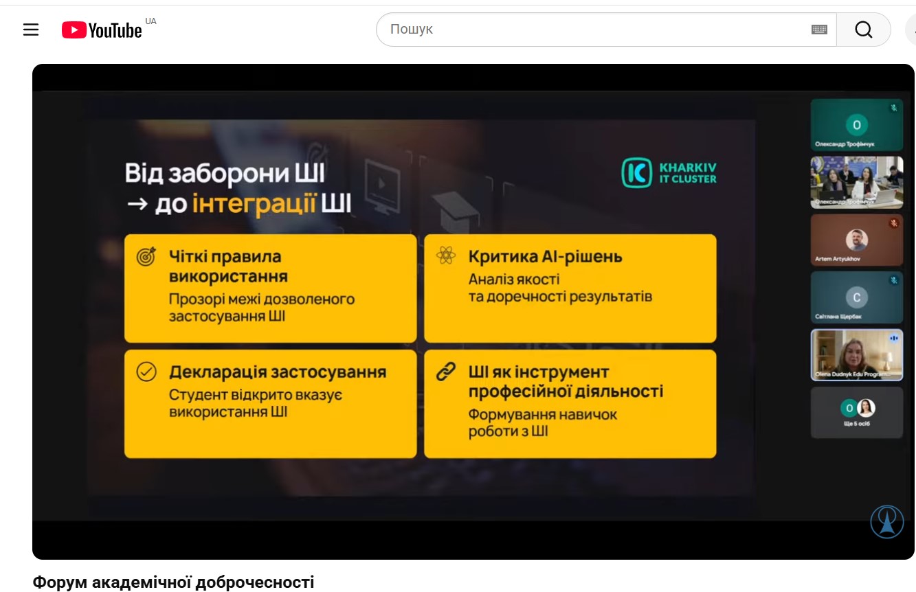У межах програми Форуму було розглянуто сучасні виклики у сфері забезпечення якості освіти, формування культури академічної доброчесності, протидії академічному плагіату, розвитку відповідального ставлення до результатів навчальної та наукової діяльності. Учасники мали можливість долучитися до обговорення, поставити запитання спікерам та ознайомитися з практичними кейсами впровадження політик доброчесності в освітніх установах.