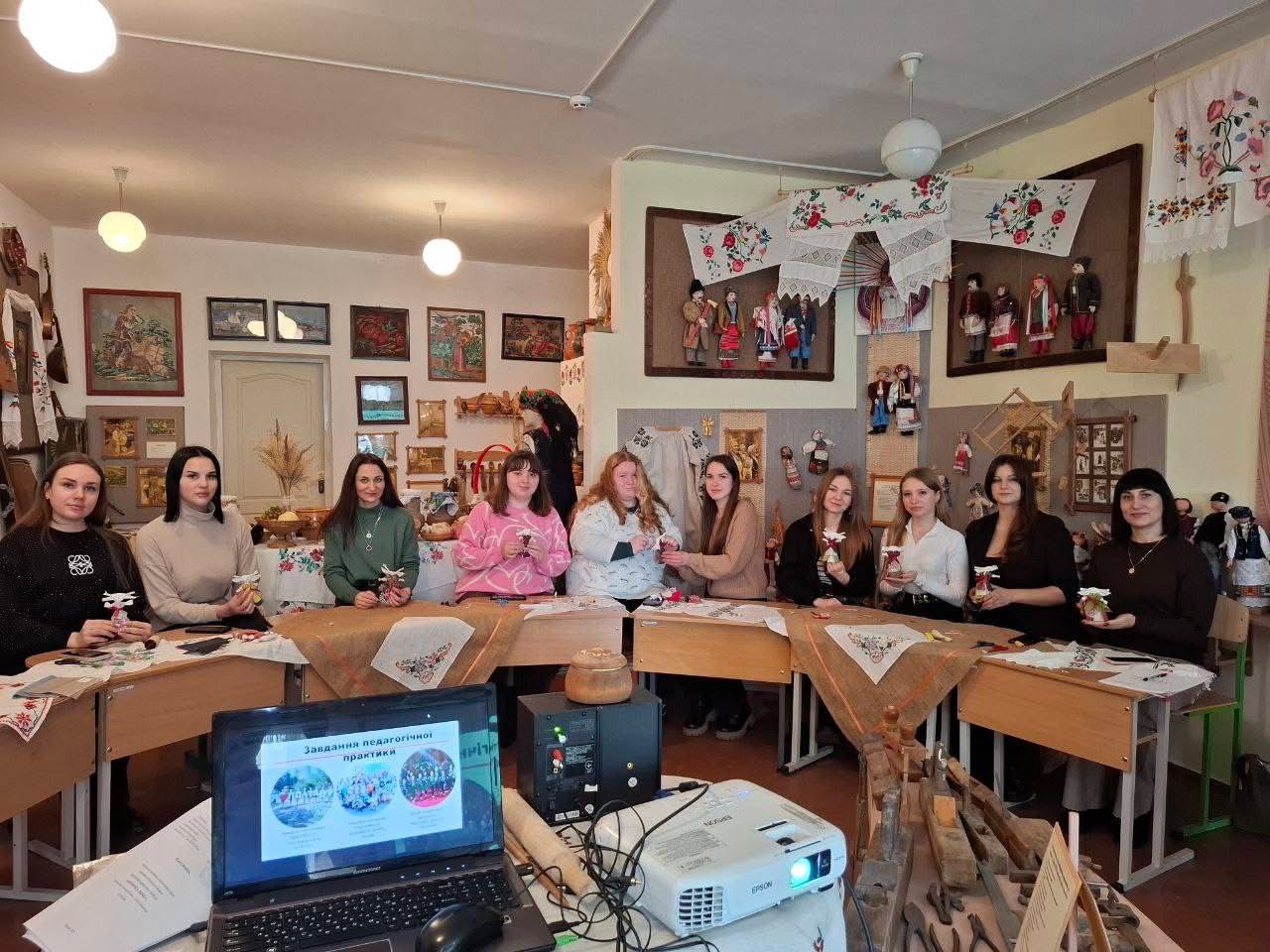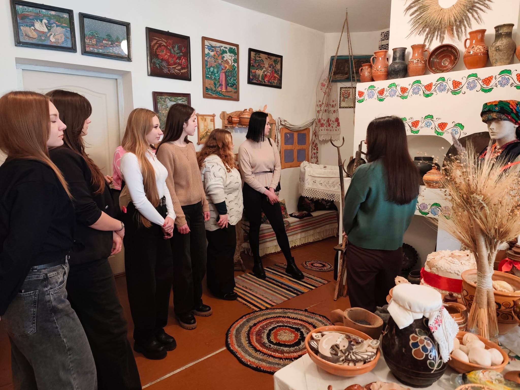 Змістовну та захопливу екскурсію територією закладу провела методист, керівник гуртка-методист, керівник зразкового музею етнографії Центру Наталія ПАНАСЕНКО. Вона занурила студентів у дивовижний світ етнографії, розповіла про діяльність зразкового музею та специфіку організації позашкільної роботи.